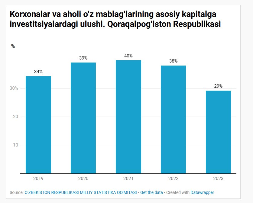 Шу билан бирга, асосий капиталга инвестицияларда корхоналар ва аҳоли томонидан ажратиладиган ўз маблағлар улушининг камайиши хавотир уйғотади.